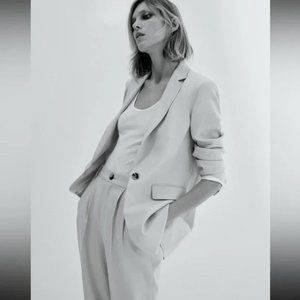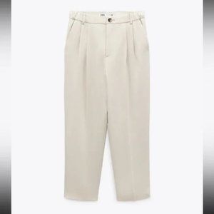 Zara pleated ankle pants, mid-rise with back elastic waist and side pockets