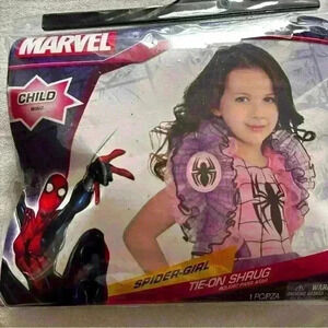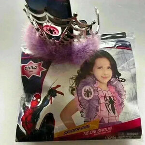 BNWT 2 Piece LOT MARVEL Spider Girl Tiara AND Spider Girl Tie-On Shrug Halloween