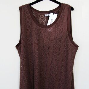 Open knit stretch polyester tank top. Rib knit crewneck and armscyes.