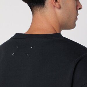 Black cotton crew-neck T-shirt from Maison Margiela featuring short sleeves, reverse numerical logo embroidery on the front, loose fit and Four Stitches logo on the back.