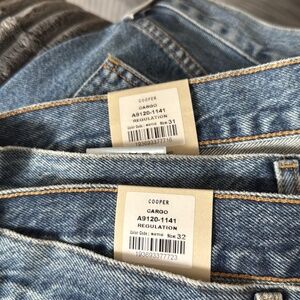 BNWT Agolde Cooper cargo Jean in color Regulation. Purchased for a dance competition and went up 4 sizes each but fit did not allow for required movement and were too big for wear after. Sizes 31 AND 32 available