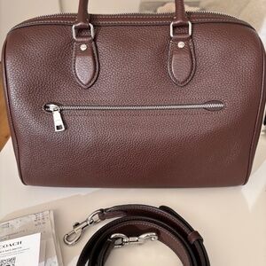 Brand new with tags authentic Coach Large Rowan in Maple refined polished pebbled leather and silver hardware. Comes with an adjustable shoulder/crossbody strap, the outlet shopping bag, and a copy of the receipt.