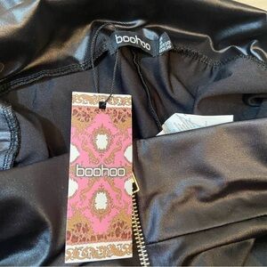 BNWT Boohoo women’s black front zip wet look leggings in size 6