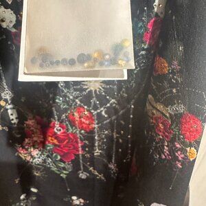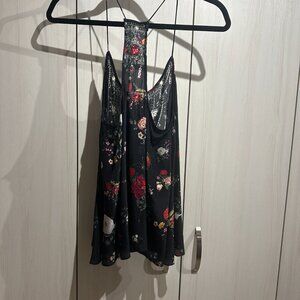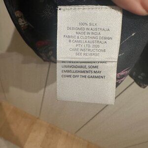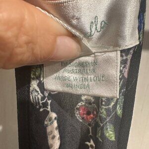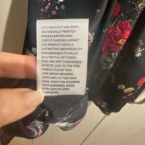 A summer top with seductive style, the To The Gypsy T Back Shoestring Top is filled with vibrant blooms set on sultry black silk for a print that's dark and mysterious. Its round neckline and flared hem give it a flattering silhouette, while CAMILLA crystal embellishment means it can be worn from day to night with effortlessness.