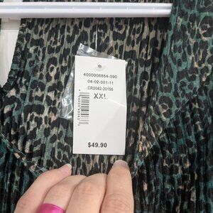 BNWT Cleo Leopard Print Crinkle Blouse Green Tan Black Size XXL
