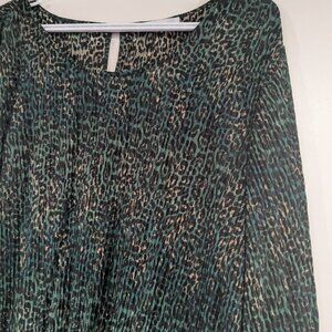 BNWT Cleo Leopard Print Crinkle Blouse Green Tan Black