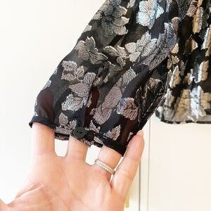 BNWOT. Sheer perfection. A semi-sheer silky crewneck top with a beautiful drape dresses up with a metallic floral jacquard pattern.