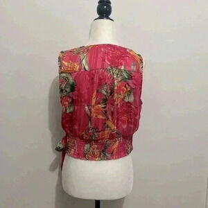 ❤️BNWT Cupcakes & Cashmere Sleeveless Faux Wrap Pink Tropical Print Top size S