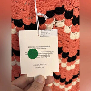 This is their Marea top which is crocheted in a beautiful salmon pink, white and black.