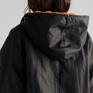 Add a luxe touch to any look with this stunning vegan leather jacket featured in a slouchy, hooded fit with contrast faux fur lining throughout for added dimension.