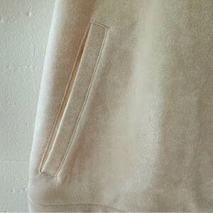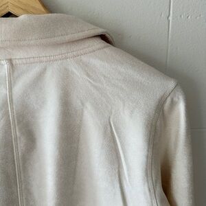 This Grace and Lace faux leather moto jacket is soft, stretchy, and ridiculously stylish. The creamy beige makes it the perfect neutral and it goes with everything from wide-leg jeans to flirty florals. Features an asymmetrical zip, tailored fit, and subtle moto details without the heavy, stiff feel of real leather. Lightweight with a cozy, almost suede-like texture. This one’s made for layering. In excellent pre-owned condition.