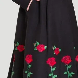 - embroidered roses detailing all around hem of coat
