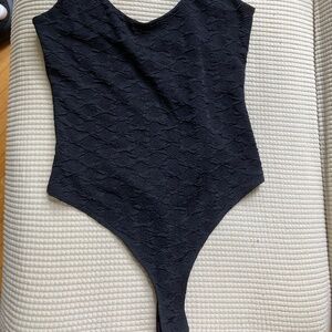 BNWT black H&M bodysuit lining around the bust size S the back is cutout slickly lower than the front.
