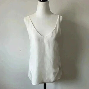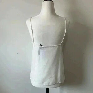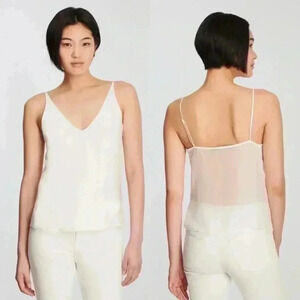 Camisole silhouette, with asymmetrical nuances and a deep V-neck