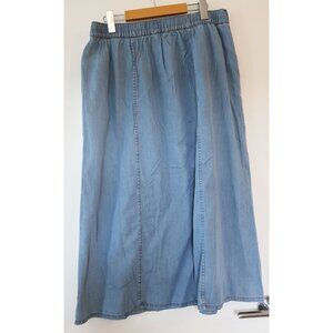 BNWT Joe Fresh Denim Viscose Midi Skirt Elastic Back L