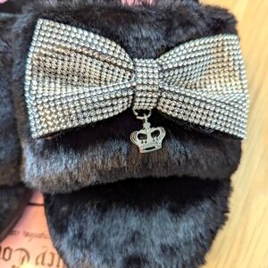 - Soft and Cozy black Faux-Fur with rhinestone bow and dangling Juicy signature crown