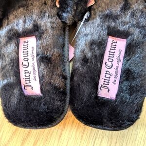 BNWT Juicy Couture Womens Furry Slide-In Slippers With Bow And Crown