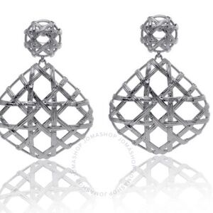 BNWT KENDRA SCOTT Statement Rhodium Plated Earrings feature traditional bohemian rattan, dipped in modern day metallic. A total Size of 2.3” x 1.9”. The weight is 28.2g.