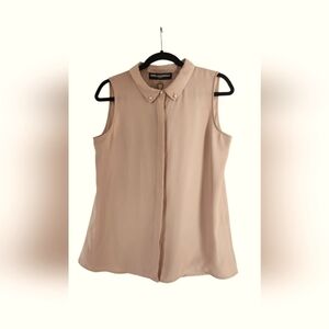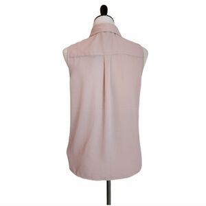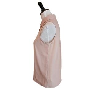 Add a touch of elegance to your wardrobe with this brand new Karl Lagerfeld lightweight pink top. Featuring a chic point collar, faux pearl accent, and pleated back yoke, this sleeveless blouse is perfect for both office days and weekend outings. Button front closure. 100% polyester. Size M