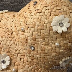 • Decorated with floral appliqués, faux pearls, and rhinestones