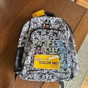 This brand new, officially licensed LEGO backpack is perfect for fans of all ages! The unique "Color Me!" design features a black-and-white minifigure pattern that can be colored in with fabric markers to create a personalized bag. It's a Heritage Classic style, built for durability and everyday adventure. Size in pictures! Retails for $100!