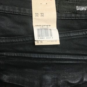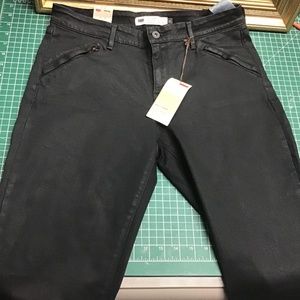 Levi’s black jeans. Zip front. Zippered pockets at front. Back flap pockets.