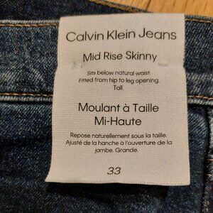 Brand new with tags. Never worn. Mid Rise Skinny Tall. Size 33. Medium to dark wash.