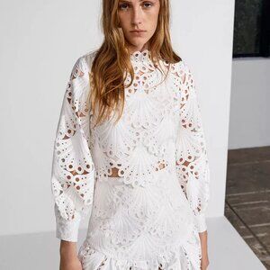 BNWT Maje Lulie Guipure Crop Top - Size 3 (Large, fits like Medium) in White