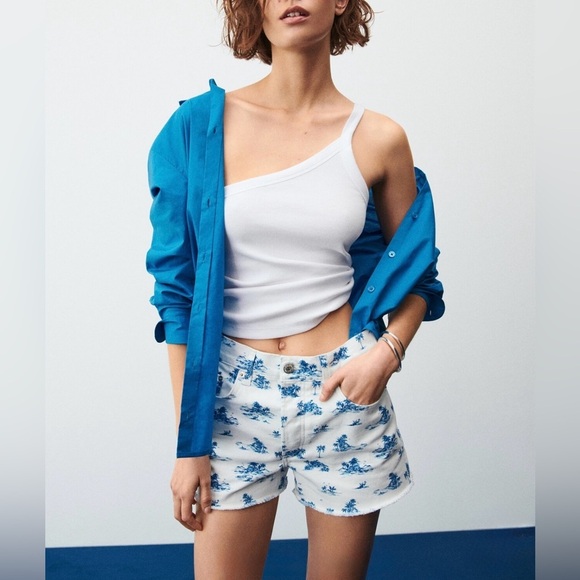 BNWT Mango Women's PRINTED DENIM SHORT Size US 4/EUR 36