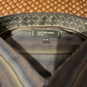 Attractive vertical striped men's long sleeve dress shirt made by Cotton Reel.