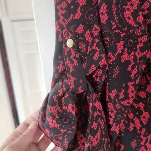 BNWT Michael Kors S 1X Woman Black Red Floral Top Blouse Zip Front Career Office