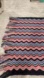 Elegant Missoni scarf with a striking chevron design. Features red, blue, pink, purple,black and cream hues. Ideal for a stylish accent.