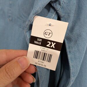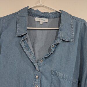 BNWT My Style Chambray Half Button Tunic Light Blue Size 2X
