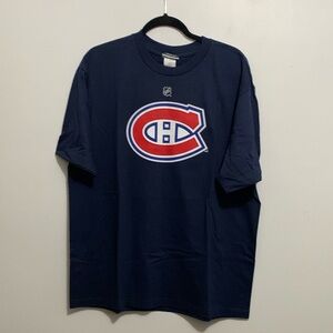 BNWT NHL Montreal Canadian Navy #17 Georges LARAQUE Blue Graphic T-Shirt size L