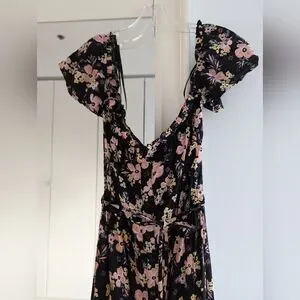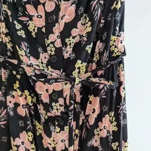 BNWT Rahi Cali High Low Ruffle Dress Size S, sleeves can be worn off the shoulder, button front and tie waist details.