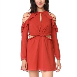BNWT Gorgeous dress from Red Carter featuring cutouts and ruffles on shoulders and side. Posted stock photos to show how it looks on...which is beautiful 💕