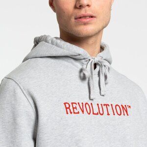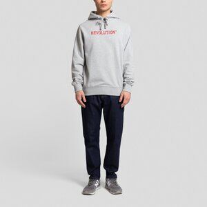 Regular fit hoodie sweatshirt made from an organic cotton and recycled polyester melange sweat fabric. Revolution logo embroidery