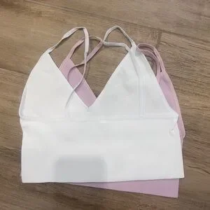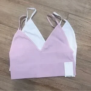BNWT Ribbed Bralette 2-pack. Size M/L. From the brand ONLY. Purchased from Silver Icing. This is a 2- pack of seamless tops. It contains a solid pink and a solid white bra top They have a V-neck at front and narrow straps. These tops have ribbed edges and are made of a soft and stretchy material.