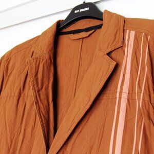 Since 1996, Acne Studios have offered staple pieces for a laid-back contemporary wardrobe, such as this brown and ginger orange cotton Racing stripe blazer. Featuring a notched collar, a front button fastening, long sleeves, button cuffs, front flap pockets, a straight hem and a wrinkled style.