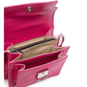 Trunk Soft crossbody bag from MARNI featuring fuchsia pink, calf leather, cotton, foldover top, clasp fastening, silver-tone hardware, adjustable shoulder strap, partitioned compartment, internal logo patch and internal zip-fastening pocket.