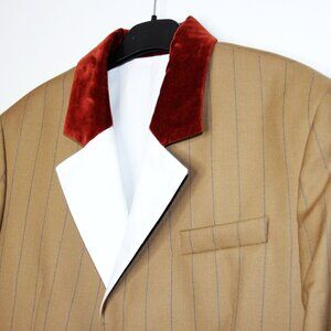 The Wales Bonner label offers a multifaceted aesthetic perspective in a blend of European heritage and Afro-Atlantic influence. This jacket from the spring collection is made of sumptuous virgin wool with rich velvet and immaculate white cotton accents, making it a must-have for summer. Wear it with its matching pant for a flawless outfit.