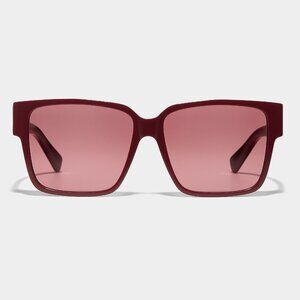 These sunglasses featuring a distinctive shape in timeless wine red acetate evoke a subtle vintage and unmistakably luxurious low-key aesthetic.