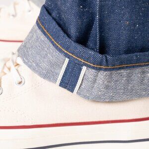 Introducing the Workforce Selvedge, a 10.9oz lightweight Japanese selvedge denim that perfectly captures the essence of traditional workwear with its classic workwear blue tone. This denim is distinctively constructed with a slubby and neppy white weft yarn, which scatters cotton specks across both the front and back of the fabric, infusing it with authentic old-school flair. Further adding its vintage appeal is the classic blue line selvedge ID. Crafted from 100% cotton, the denim starts off crisp but quickly softens, providing comfort from the first wear. Its lighter shade of indigo accelerates the fading process, allowing you to achieve lighter, vintage-style fades with ease. Proudly made in our Canadian factory, these jeans are completed with contrast white stitching, a button fly, a wet bark vintage-style cardboard patch, and silver metallic hardware.