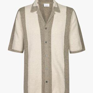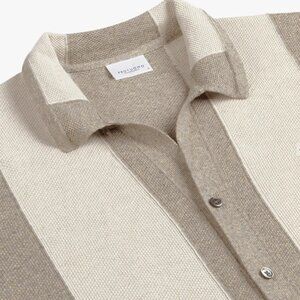 This camp-collar polo is a real essential for this summer. Knitted from a cotton blend in a lavish stripe for a pleasing summer look with real pearl buttons.