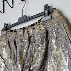 THIS LIGHTWEIGHT GOLD MEGACRUST DENIM IS MADE ON A 10OZ BLACK AND NATURAL STRETCH DENIM. THE READY GARMENT IS OVERDYED DUST AND THEN TREATED WITH LAYERS OF GOLD COLORED FOIL THAT IS PRESSED ON BY HAND.