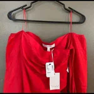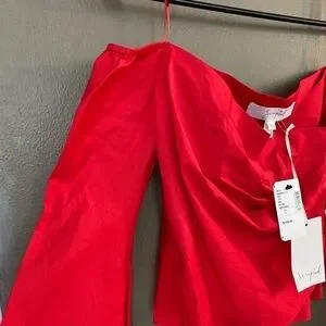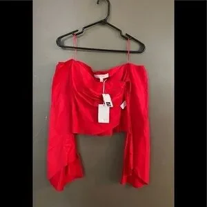 Vibrant Red, BNWT, Scripted blouse. It’s tiny but has stretch, falls off the shoulders and looks amazing with dark jeans or a pair of wide leg trousers!! ❤️🌹👠