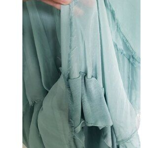 BNWT Silk Waterfall Layered 3/4 arm Midi Dress Made in Italy Light Teal