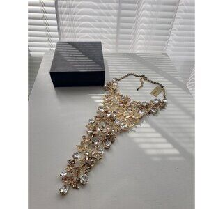 BNWT Statement Necklace Crystal Waterfall Gold Bib necklace, Lead free