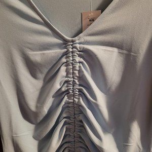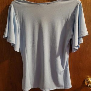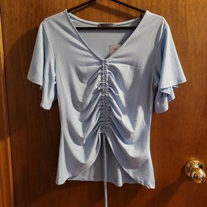 BNWT Suzy Sheir Baby Blue Drawstring Flutter Sleeve Top M