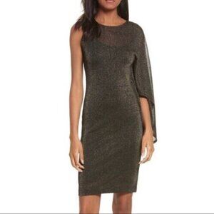 BNWT Ted Baker London Monyca Black Gold Metallic One Shoulder Draped Dress